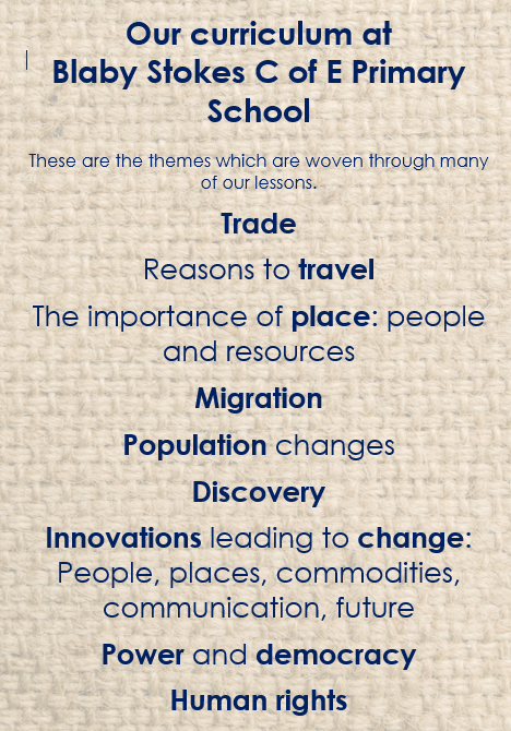 We are very proud of the curriculum that we are developing, teaching and learning at Blaby Stokes C of E School. We feel it empowers the children with a sense of who they are and where they come from. It gives them not just the vision to see that they are part of a changing world; but also the power to understand that they can be part of that change.